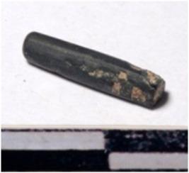 | Description / विवरण | A fragment of a stone drill bit circular in section broken from one end of smooth surface. |