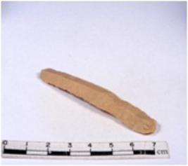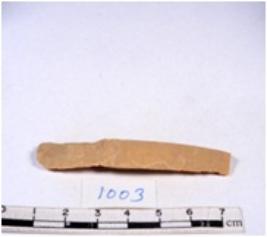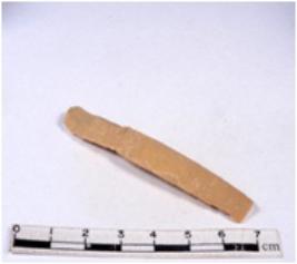 | Description / विवरण | A fragment of a rectangular shaped chert blade showing dorsal sides with sharp edges having smooth surface and triangular section. |