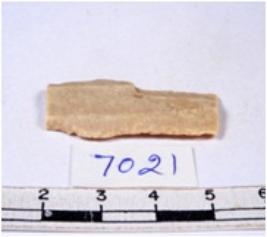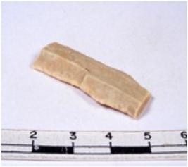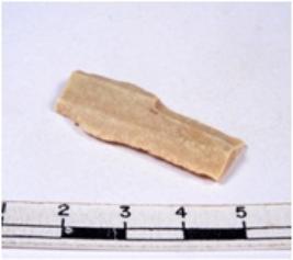 | Description / विवरण | A fragment of a rectangular shaped chert blade showing dorsal sides with sharp cutting edges having smooth surface and triangular section. |