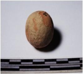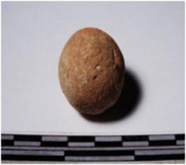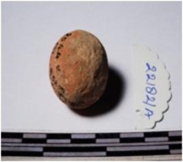 | Description / विवरण | A terracotta sling ball round in shape of smooth surface. |