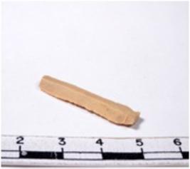 | Description / विवरण | A fragment of a rectangular shaped chert blade showing parallel sides with sharp edges having smooth surface and uneven section. |