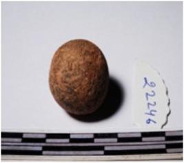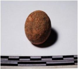 | Description / विवरण | A terracotta sling ball round in shape of smooth surface. |