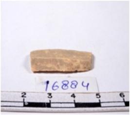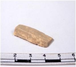 | Description / विवरण | A fragment of a rectangular shaped chert blade showing dorsal sides with sharp edges having smooth surface and triangular section. |