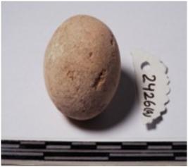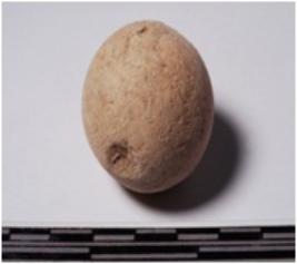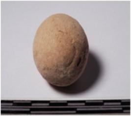 | Description / विवरण | A terracotta sling ball round in shape of circular in section of smooth surface. |