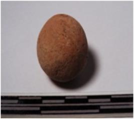 | Description / विवरण | A terracotta round in shaped sling ball, circular in section of smooth surface. |