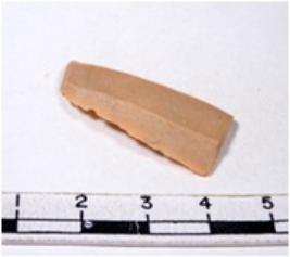 | Description / विवरण | A fragment of a rectangular shaped chert blade showing parallel sides with sharp edges having smooth surface and triangular section. |