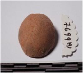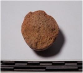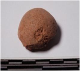 | Description / विवरण | A fragment of a terracotta round shaped sling ball, circular in section of smooth surface. |
