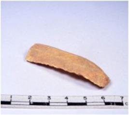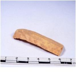 | Description / विवरण | A fragment of a rectangular shaped chert blade showing parallel sides with sharp edges having smooth surface and triangular section. |