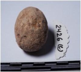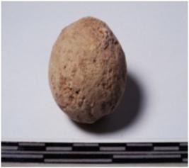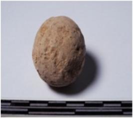 | Description / विवरण | A terracotta sling ball round in shape of circular in section of rough surface. |