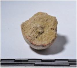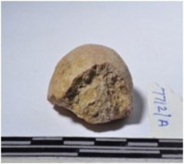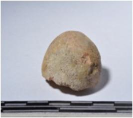 | Description / विवरण | A fragment of a terracotta sling ball round in shape of smooth surface. |