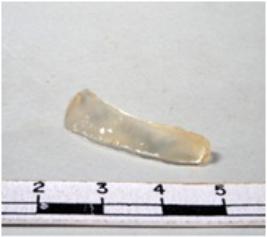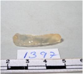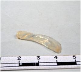 | Description / विवरण | A fragment of a rectangular shaped chalcedony blade showing parallel sides with sharp edges having smooth surface and triangular section. |