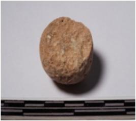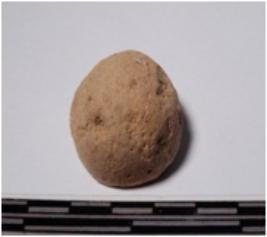 | Description / विवरण | A fragment of a terracotta ball round in shape of smooth surface. |