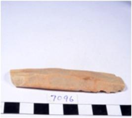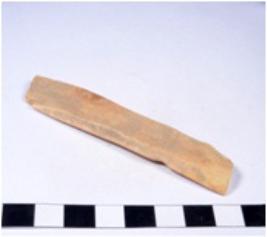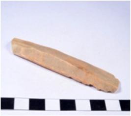 | Description / विवरण | A fragment of a rectangular shaped chert blade showing parallel sides with sharp cutting edges having smooth surface and triangular section. |