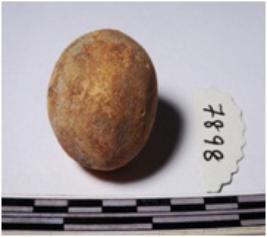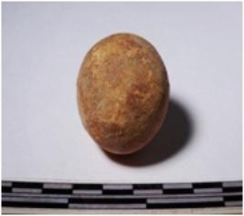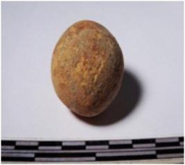 | Description / विवरण | A terracotta round in shaped sling ball of smooth surface. |