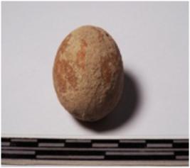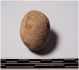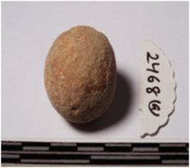 | Description / विवरण | A terracotta sling ball, round in shape circular in section of smooth surface. |