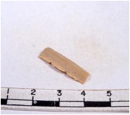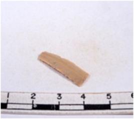 | Description / विवरण | A fragment of a rectangular shaped chert blade showing dorsal sides with sharp edges having smooth surface and triangular section. |