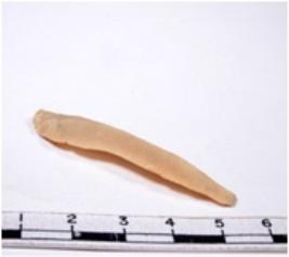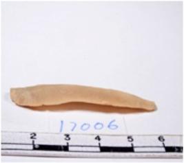 | Description / विवरण | A fragment of a rectangular shaped chert blade showing parallel sides with sharp edges having smooth surface and uneven section. |