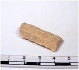 | Description / विवरण | A fragment of a rectangular shaped chert blade showing parallel sides with sharp edges having smooth surface and uneven section. |