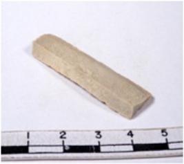 | Description / विवरण | A fragment of a rectangular shaped chert blade showing parallel sides with sharp edges having smooth surface and uneven section. |