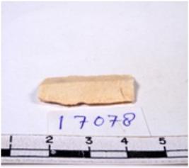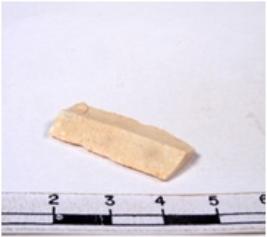| Description / विवरण | A fragment of a rectangular shaped chert blade showing dorsal sides with sharp edges having smooth surface and triangular section. |