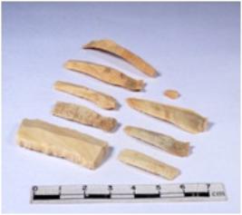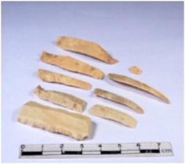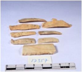 | Description / विवरण | A fragment of a rectangular shaped chert blade showing dorsal sides with sharp edges having smooth surface and triangular section. |