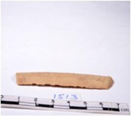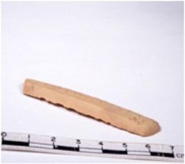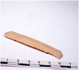 | Description / विवरण | A fragment of a rectangular shaped chert blade showing dorsal sides with sharp edges having smooth surface and triangular section. |
