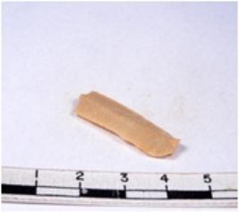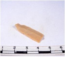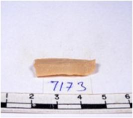 | Description / विवरण | A fragment of a rectangular shaped chert blade showing dorsal sides with sharp edges having smooth surface and triangular section. |