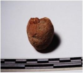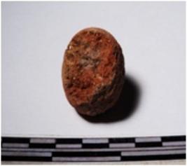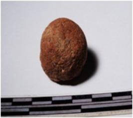 | Description / विवरण | A fragment of a terracotta sling ball round in shape of smooth surface. |