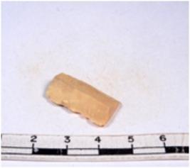 | Description / विवरण | A fragment of a rectangular shaped chert blade showing parallel sides with sharp cutting edges having smooth surface and triangular section. |