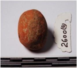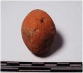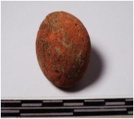 | Description / विवरण | A terracotta sling ball round in shape of uneven surface, of smooth surface. |
