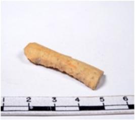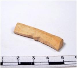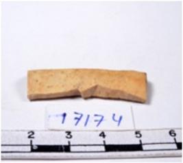 | Description / विवरण | A fragment of a rectangular shaped chert blade showing parallel sides with broken edges having smooth surface and uneven section. |