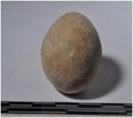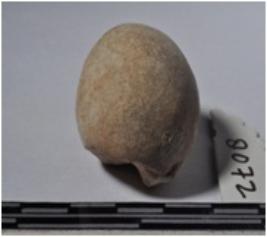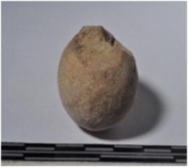 | Description / विवरण | A terracotta sling ball, round in shaped and smooth surface. |