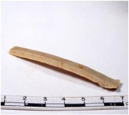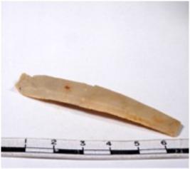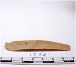 | Description / विवरण | A fragment of a rectangular shaped chert blade showing dorsal sides with sharp edges having smooth surface and triangular section. |