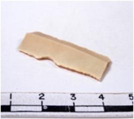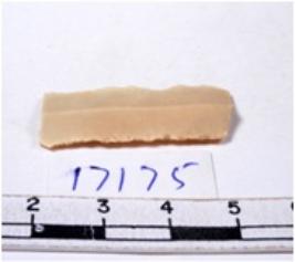 | Description / विवरण | A fragment of a rectangular shaped chert blade showing dorsal sides with sharp edges having smooth surface and triangular section. |
