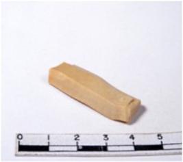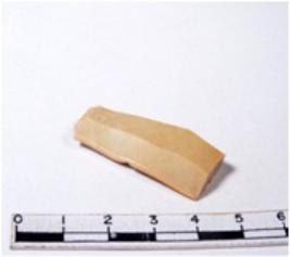 | Description / विवरण | A fragment of a rectangular shaped chert blade showing parallel sides with sharp edges having smooth surface and uneven section. |