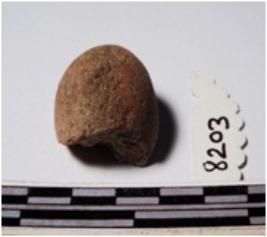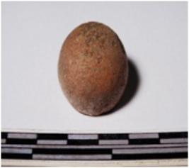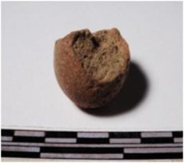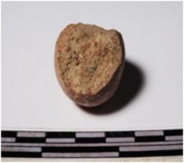 | Description / विवरण | A fragment of a terracotta round shaped sling ball, circular in section of rough surface. |