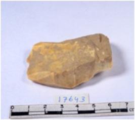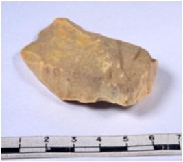 | Description / विवरण | A fragment of a rectangular shaped unfinished chert blade showing uneven section having smooth surface. |