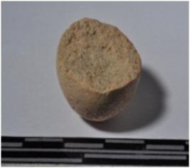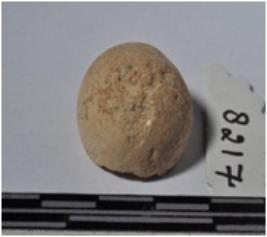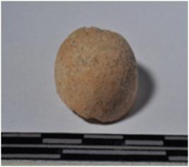 | Description / विवरण | A fragment of a terracotta sling ball, globular shaped and rough surface. |