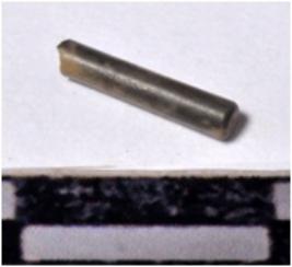 | Description / विवरण | A fragment of a stone drill bit, circular in section, broken from both end of smooth surface. |