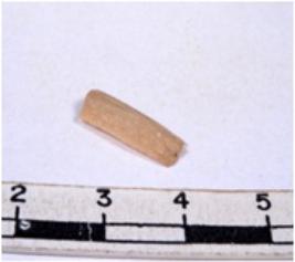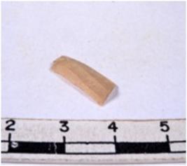 | Description / विवरण | A fragment of a rectangular shaped chert blade showing dorsal sides with sharp cutting edges having smooth surface and triangular section. |
