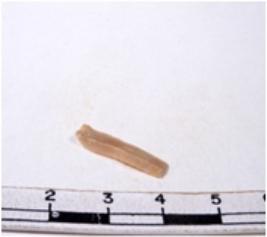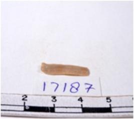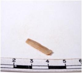 | Description / विवरण | A fragment of a rectangular shaped chert blade showing dorsal sides with edges having smooth surface and triangular section. |