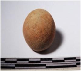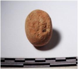 | Description / विवरण | A terracotta sling ball round in shape of smooth surface. |