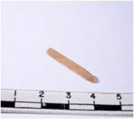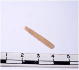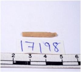 | Description / विवरण | A fragment of a rectangular shaped chert blade showing dorsal sides with sharp edges having smooth surface and triangular section. |