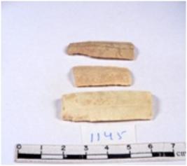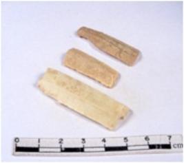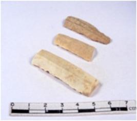 | Description / विवरण | A fragment of a rectangular shaped chert blade showing dorsal sides with sharp cutting edges having smooth surface and triangular section. |