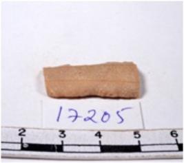 | Description / विवरण | A fragment of a rectangular shaped chert blade showing dorsal sides with sharp edges having smooth surface and triangular section. |