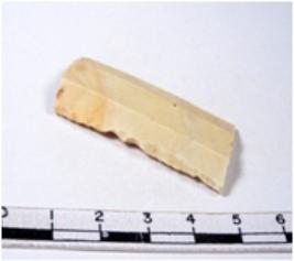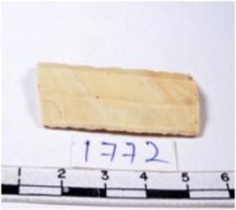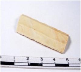 | Description / विवरण | A fragment of a rectangular shaped chert blade showing dorsal sides with sharp edges having smooth surface and triangular section. |