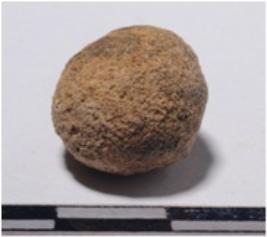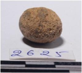 | Description / विवरण | A stone sling ball round in shape of rough surface. |