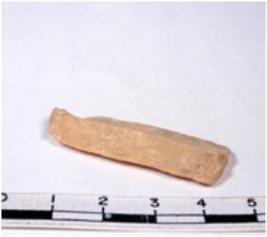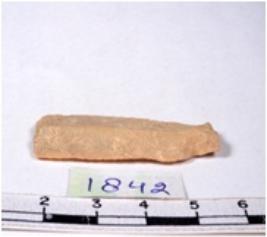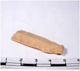 | Description / विवरण | A fragment of a rectangular shaped chert blade showing dorsal sides with sharp edges having smooth surface and triangular section. |