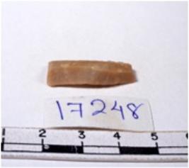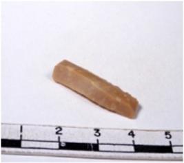 | Description / विवरण | A fragment of a rectangular shaped chert blade showing dorsal sides with sharp edges having smooth surface and triangular section. |