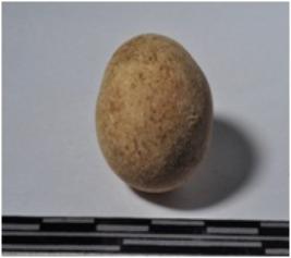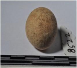 | Description / विवरण | A terracotta sling ball, round in shaped and rough surface. |